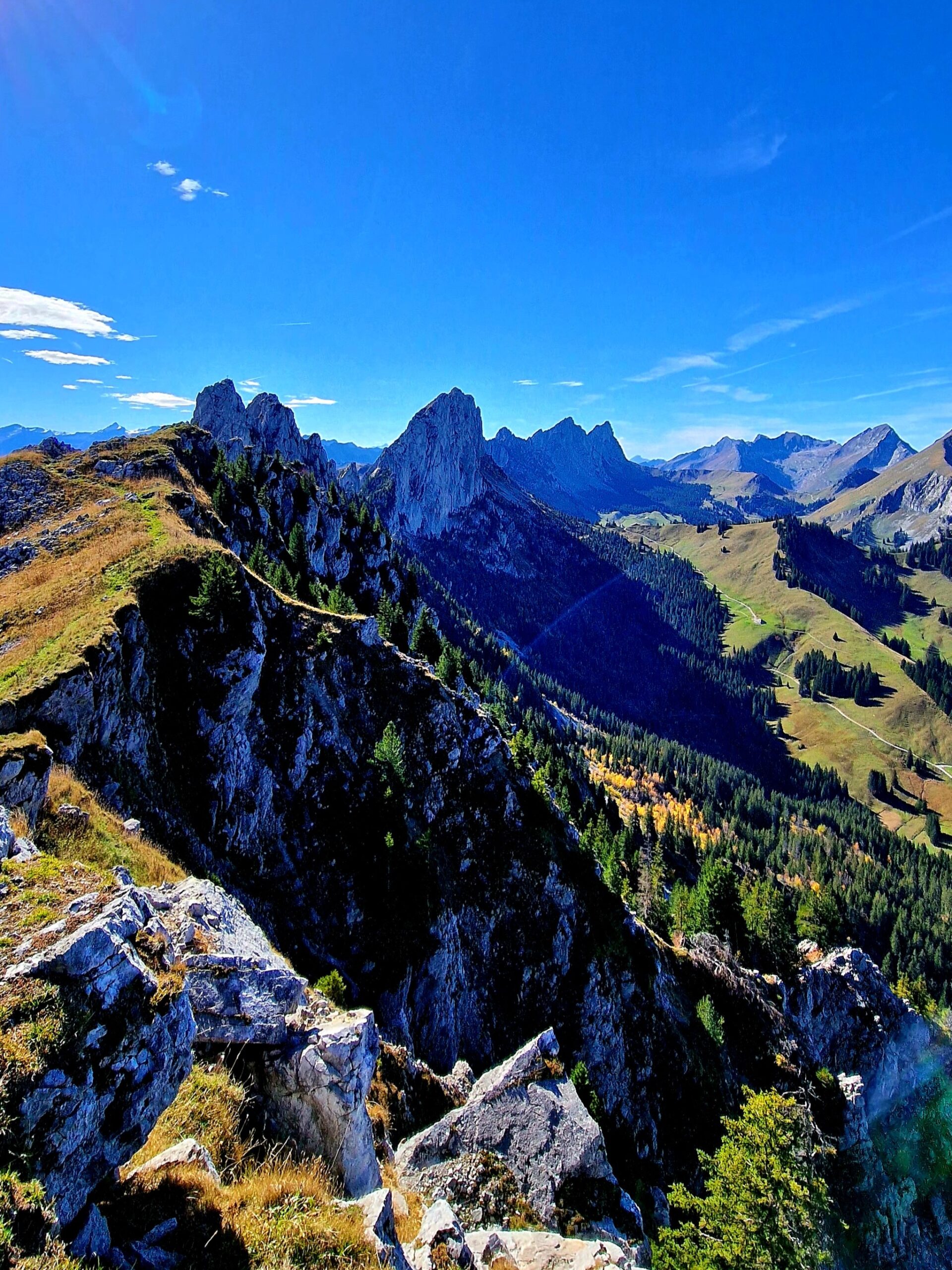 🚸 Les Gastlosen, souvent surnommées les “Dolomites suisses”, forment l’un des massifs calcaires les plus impressionnants du canton de Fribourg. Cette randonnée offre une immersion spectaculaire au cœur d’un cirque rocheux majestueux, dominé par des parois abruptes et élancées.